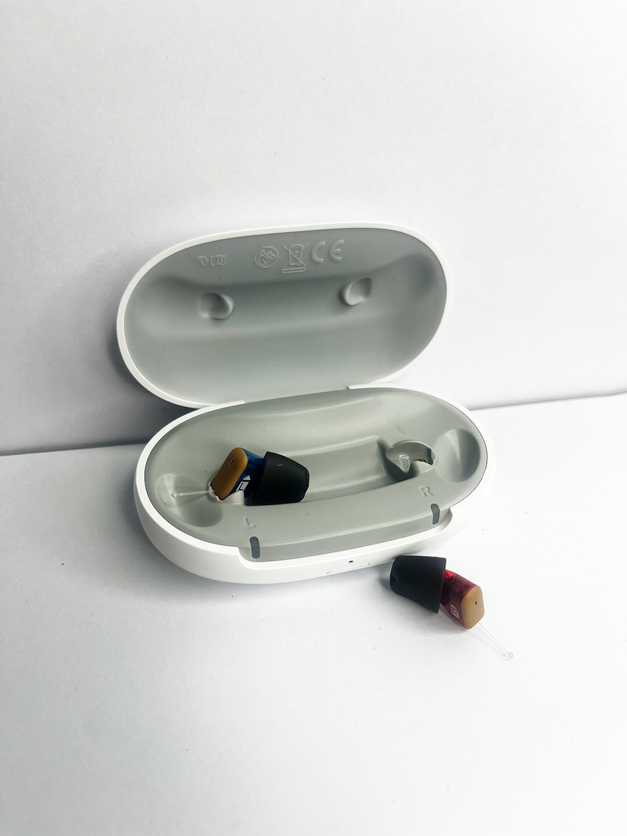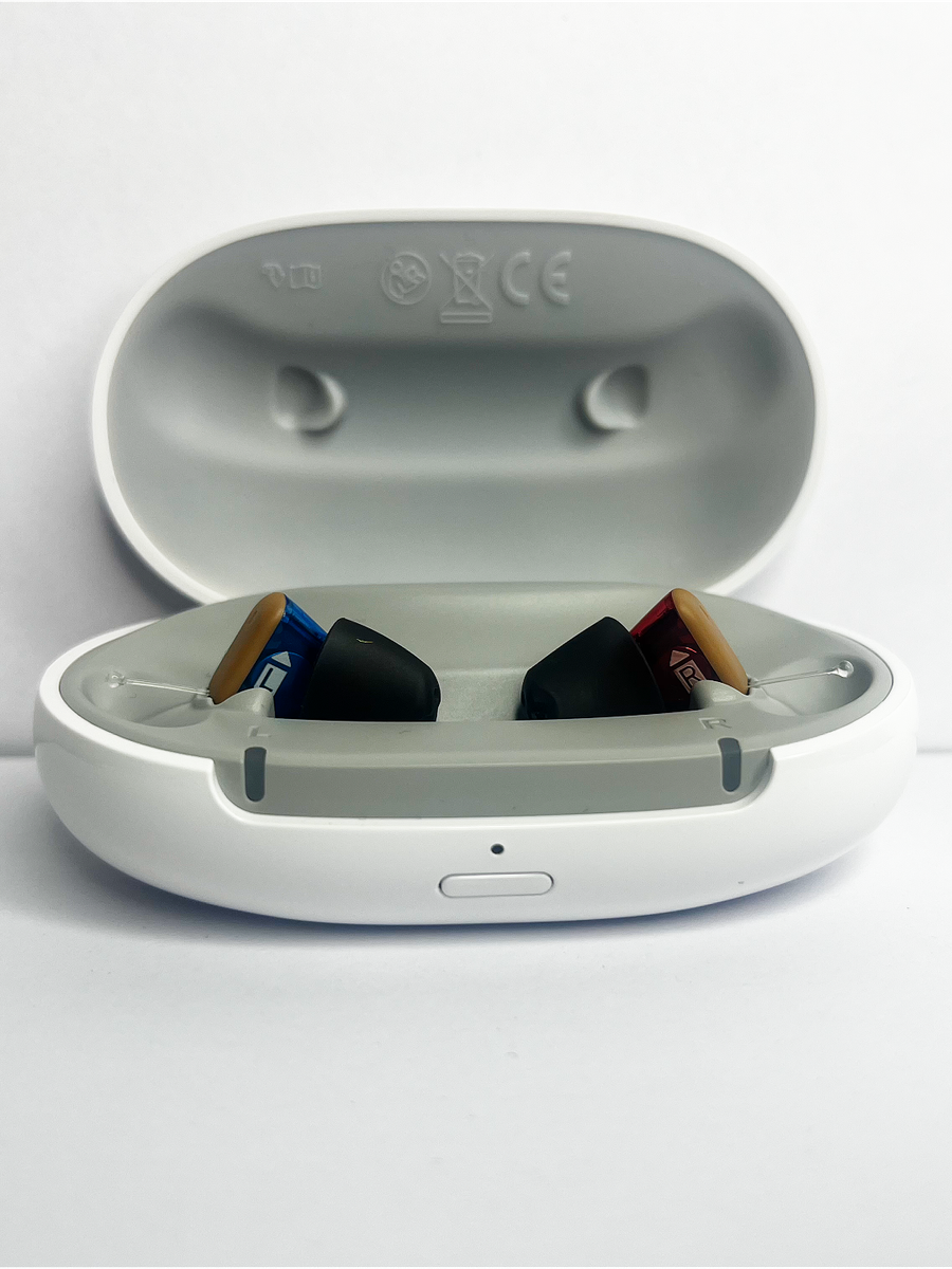 - Binaural OneMic Directionality 2.0 — Despite having a single microphone per ear due to the CIC form factor, both hearing aids share data to maintain a focused directional listening pattern, prioritizing speech from the front.